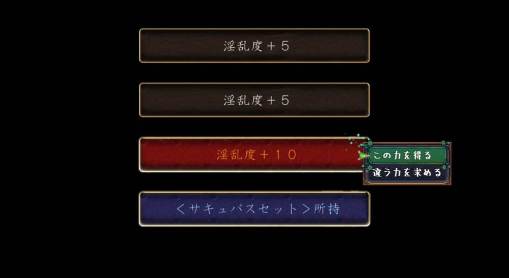 | 強くなりたい | 淫乱度以外のステータス+1 |